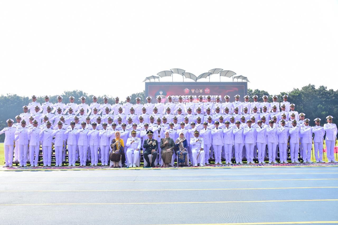 Setelah tujuh bulan menempuh Pendidikan Pertama (Dikma) di Magelang, sebanyak 350 Perwira Prajurit Karier TNI TA 2024 yang terdiri dari 141 personel Matra Darat (Pria 127 dan Wanita 14), 108 personel Matra Laut (Pria 89 dan Wanita 19) serta 101 personel Matra Udara (Pria 94 dan Wanita 7) resmi dilantik dan diambil sumpah oleh Panglima TNI.