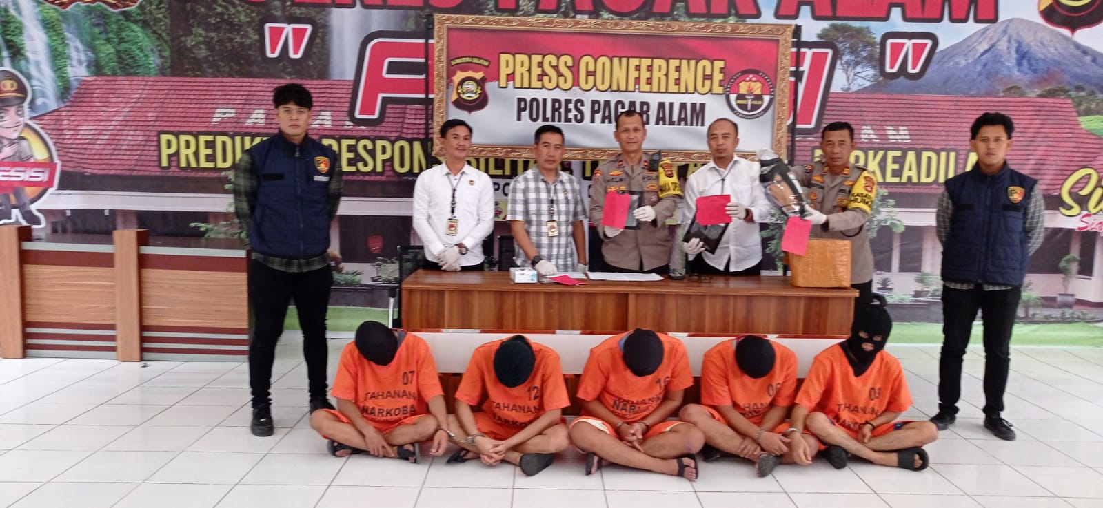 “Ungkap kasus peredaran narkoba jenis ganja ini awalnya dari laporan warga yang kita tindaklanjuti oleh tim Satres Narkoba,” ungkap Waka Polres Pagar Alam Kompol Helmi Ardiansyah didampingi KBO Satres Narkoba Ipda Hendi, saat memimpin Pers Release ungkap kasus narkoba Rabu (17/4/2024), bertempat di Aula Wirasatya Polres Pagar Alam.