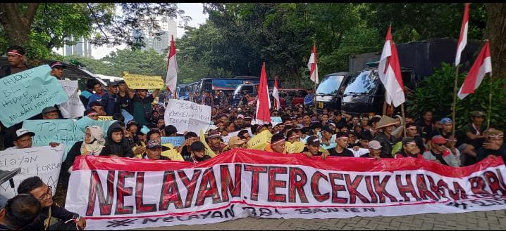 Jakarta – Massa aksi Nelayan Binuangeun, Lebak Selatan menuntut keadilan kepada Menteri Kelautan dan Perikanan (KKP), terutama kenaikan harga benih bening lobster (BBL), dan adanya pelanggaran terhadap Keputusan Menteri KKP Nomor 24 Tahun 2024, khususnya terkait Harga Patokan Terendah (HPT) benih lobster, tepatnya di depan Kantor Kementerian Kelautan dan Perikanan (KKP) RI, Jalan Merdeka Timur, Gambir, Jakarta Pusat, Senin (02/06/2025).