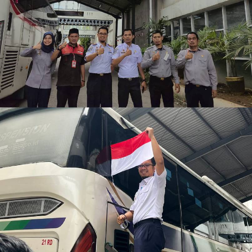 Petugas SATPEL TTM terlihat sigap membagikan bendera merah putih kepada Sopir bus antarkota antarprovinsi (AKAP). Kegiatan ini tidak hanya mempercantik armada, tetapi juga menghadirkan nuansa kemerdekaan di jalanan.