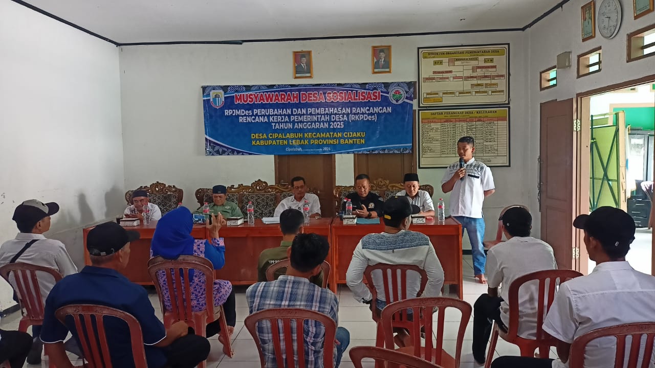 Lebak, – Berdasarkan kepada UU NO 3 tahun 2024 atas perubahan UU NO 6 tahun 20017 Tentang Desa,maka berdasar kepada surat edaran yang di sampaikan melalui pemerintahan Kecamatan Desa Cipalabuh kecamatan Cijaku kabupaten Lebak-Banten menggelar rapat MUSDes RPJMDes dan RKPDes Tahun anggaran 2025.