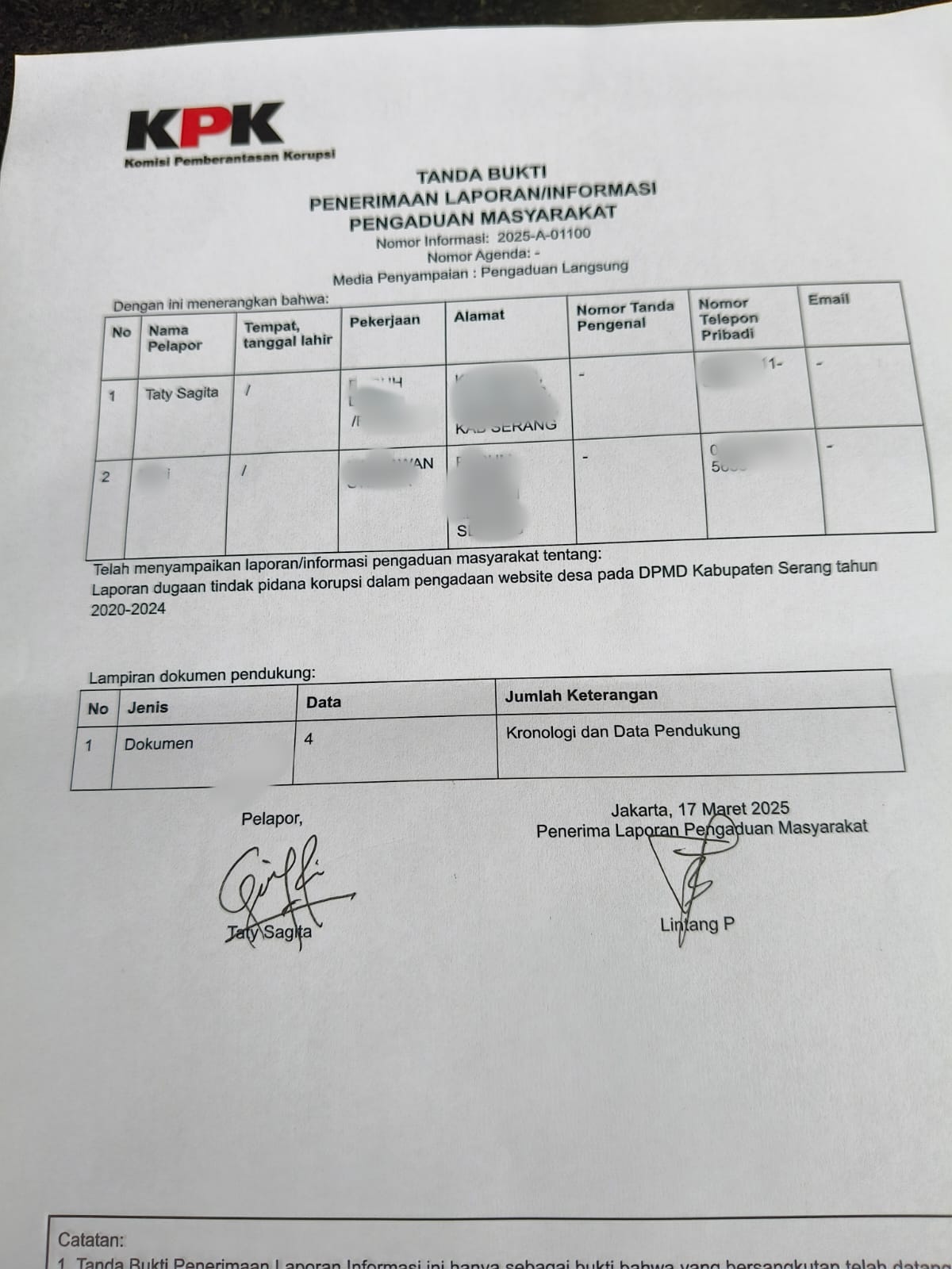 Mewakili FORMASAT, Tati mengungkapkan bahwa kegiatan pengadaan ini dimulai dengan surat DPMD Kabupaten Serang Nomor 005/190/DPMD/2023, tertanggal 10 Februari 2023, yang mewajibkan seluruh desa menggunakan jasa PT WSM. Surat ini diduga merupakan kelanjutan dari kebijakan (R) saat masih menjabat Kepala DPMD.