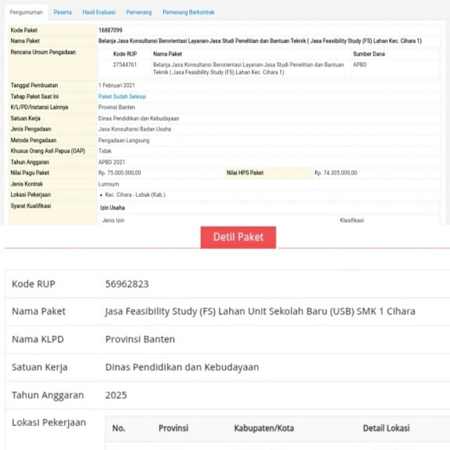“Belanja jasa konsultasi Feasibility Study (FS) untuk SMKN 1 Cihara, dengan nilai kontrak Rp 74.305.000, dengan pemenang lelang PT Sinergi Geoplan Konsultan,” kata Deden, Kamis (22/5/2025).