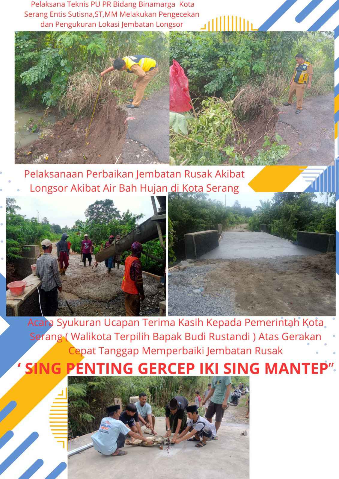 Gerakan cepat itu terkait adanya longsor yang mengakibatkan jembatan rusak parah sehingga tidak dapat di lalui oleh masyarakat sekitar, yang di sebabkan cuaca hujan di wilayah kota serang dalam beberapa hari ini.