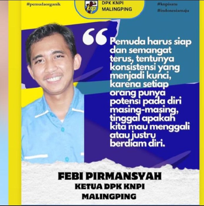 M. Febi Pirmansyah selaku Ketua DPK KNPI Malingping mengatakan demi menyongsong sistem PEMILU yang jujur,adil dan bersih pihaknya sudah menyiapkan personil di setiap TPS yang ada di Kecamatan Malingping untuk mengawasi proses penyelenggaraan pemilu. febi mengatakan bahwa hal ini sebagai bentuk kepedulian pemuda pada nasib masa depan bangsa, jangan sampai ada kecurangan yang lenggang.