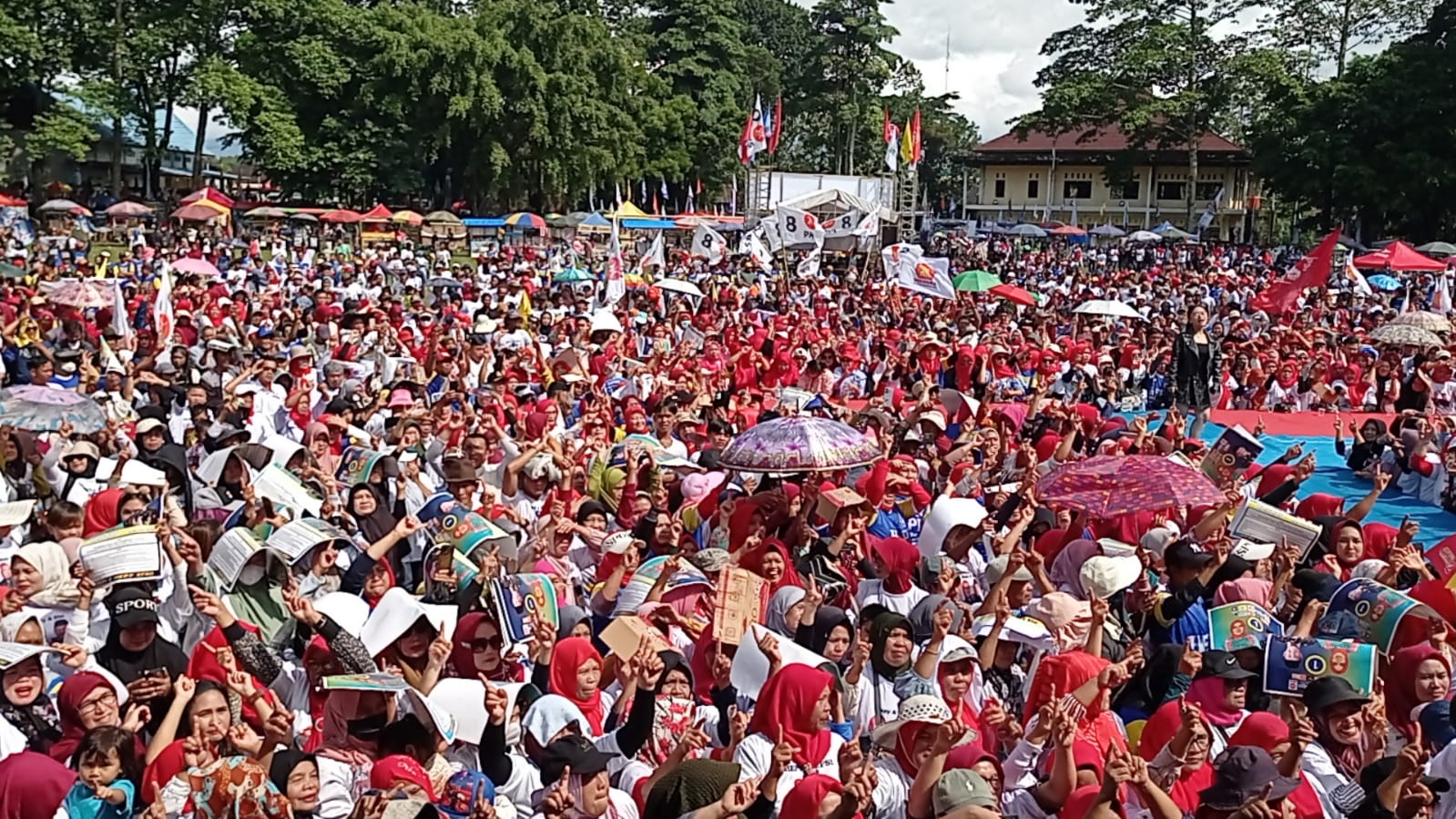 Pantauan di lapangan nampak Paslon 01 dengan jargon kerbai Jilbab Abang dan Lanang batik kuning Didampingi Ketua Tim pemenangan dan Relawan Hepy-Efsi Joncik Muhammad di Teriakan yel yel kemenangan dari puluhan ribu massa dari lima Kecamatan Kota Pagar Alam yang memadati tempat kegiatan tersebut sejak pagi hari.