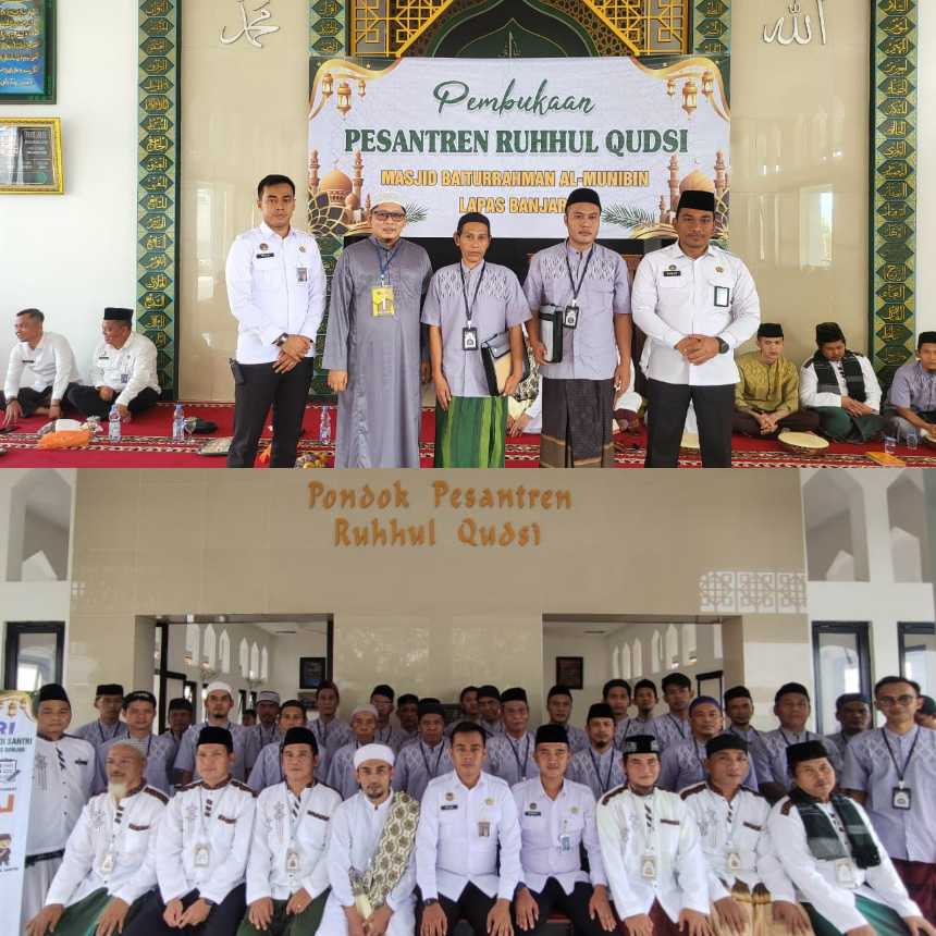 Banjar – Lembaga Pemasyarakatan Kelas IIB Banjar pembukaan pesantren Ruhhul Qudsi dan Istigosah doa bersama pegawai dan warga binaan di Mesjid Baiturrahman Al-Munibin Lapas Banjar,Selasa 7 Oktober 2025.