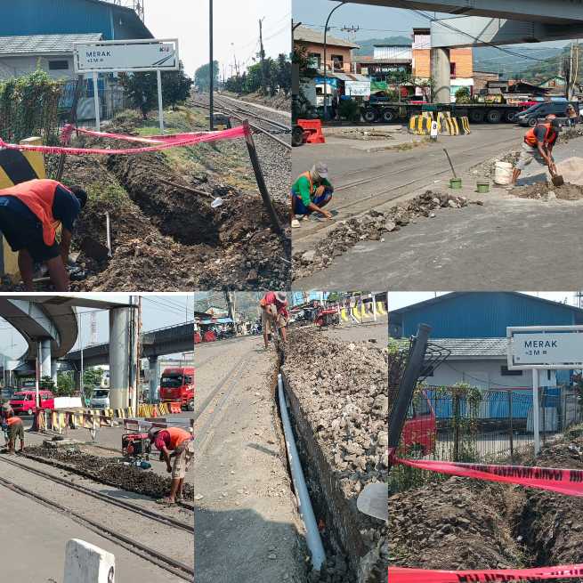 Merak,– Sejumlah pekerja proyek galian kabel milik PT Kereta Api Indonesia (KAI) di area perlintasan rel Stasiun Merak, Senin (8/9/2025), diduga mengabaikan prosedur keselamatan kerja.