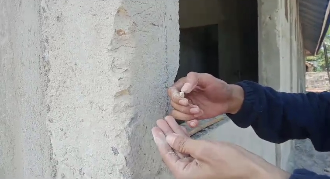 “Memang benar beton pada tiang cara pengecoran nya tidak menggunakan Mini Molen atau Concrete Mixer tapi dengan cara manual menggunakan sekrup dan cangkul”, katanya.