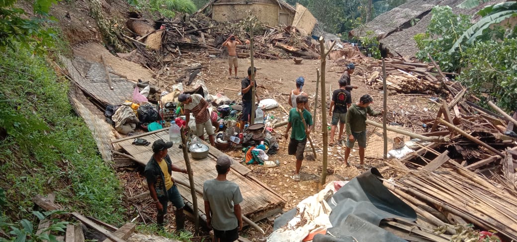 Rumah yang rusak parah milik saudara Ahim, Udin, Saipan, Anar, Sarja, Andri dan Olot Salindara. Tempat kelahiran Lebak Desa kanekes kecamatan Leuwidamar Laporan keurgian mencapai Ratusan juta Rupiah.