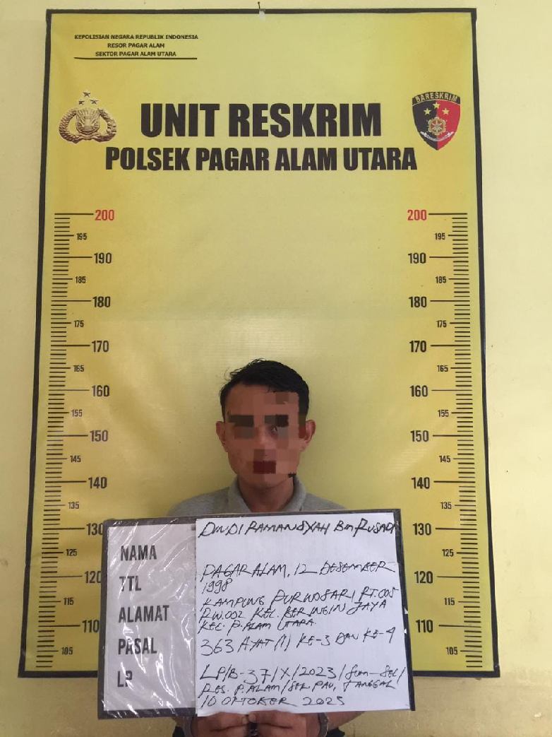 “Pelaku pun mengakui telah melakukan pencurian bersama temannya Leo. Pelaku kemudian dibawa ke Polsek Pagaralam Utara untuk diproses lebih lanjut dan berupaya mencari keberadaan Leo,” imbuh nya