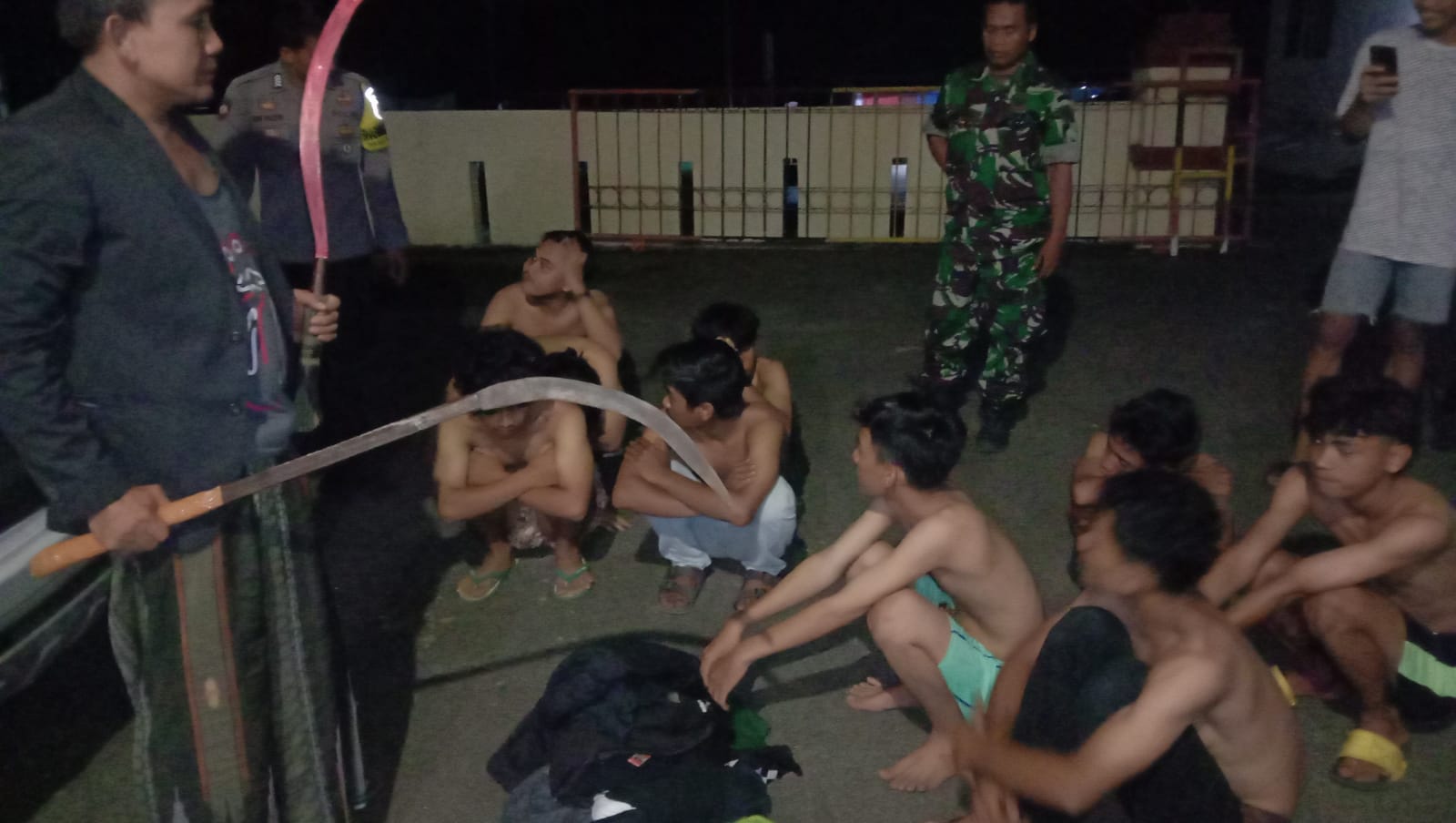 “adanya laporan dari warga, Saya langsung meluncur ke TKP yang ada di wilayah Genggong namun ternyata sudah bubar. Namun Kami mendapatkan informasi kembali bahwa para pelaku tawuran telah melarikan diri ke Babakan Malangnengah Desa Kerta. Para pelaku tawuran membawa 5 sepeda motor yang kebetulan tertangkap oleh Saya 3 motor, Alhamdulillah akhirnya saya di bantu warga, dua motor lagi melarikan diri, setelah di interogasi dan meminta bantuan warga untuk mencari barang bukti, maka ditemukanlah 2 sajam jenis celurit, setelah menemukan senjata tajam maka kami langsung menghubungi Anggota Babinsa dan Babinkantibmas untuk di bantu mengamankan, dan setelah di bawa ke kantor desa saya langsung membawa ke polsek Banjarsari untuk di Lakukan Pembinaan. Ujarnya (Red)