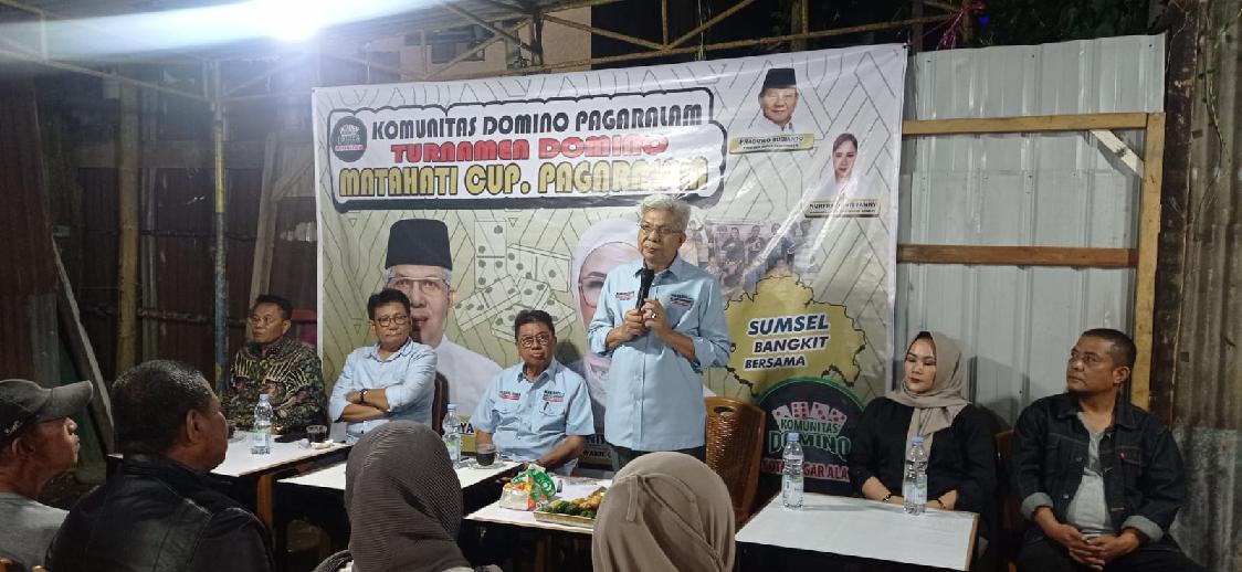 Pagar Alam – Bakal calon gubernur Sumatera Selatan Mawardi Yahya Didampingi panglima pemenangan Syarial Oesman, ketua tim Komando Nurfrafyanti Fanny dan timses lainnya sambangi dan silaturahmi dengan Komunitas Domino Pagar Alam .