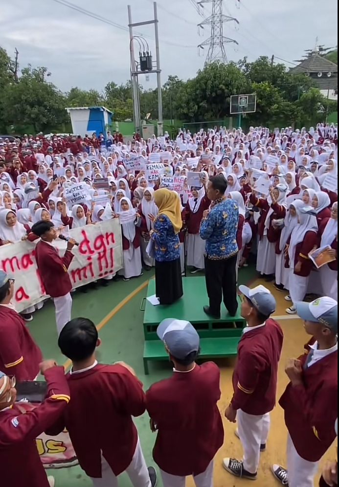 Bekasi – Sebanyak 850 siswa Madrasah Aliyah Negeri (MAN) 2 Kota Bekasi mengadakan aksi damai pada Senin (17/2/2025) sebagai bentuk protes terhadap Kepala Sekolah, Nina Indriana. Mereka menuntut kejelasan terkait prosesi wisuda dan fasilitas sekolah yang dianggap tidak sebanding dengan biaya yang dibayarkan setiap bulan.