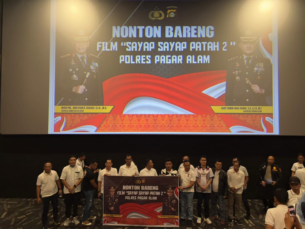 Pagar Alam,- Kapolres Pagar Alam AKBP Erwin aras Genda, SH.,S.I.K.,M.T Didampingi Waka Polres Kompol M.Ali beserta para PJU menggelar Nonton Bareng (Nobar) Film dengan Judul “Sayap -Sayap Patah” yang berlangsung di bioskop Platinium Ciniplek City Mall Lahat Selasa 20 Mei 2025.
